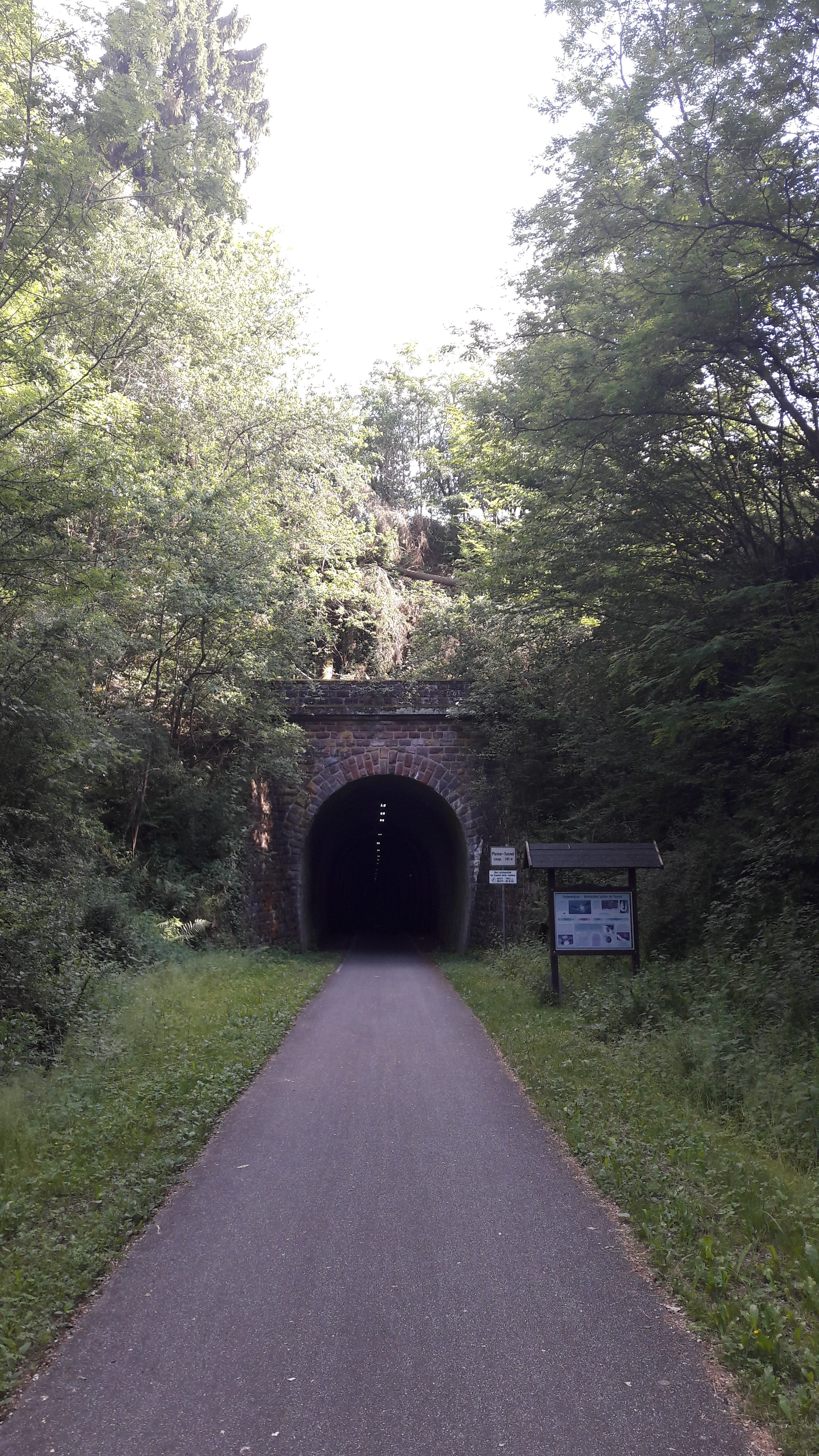 Besonders zu erwähnen ist meiner Meinung nach die abwechslungsreiche Naturlandschaft entlang des Maare-Mosel-Radwegs. Er verbindet die Highlights der Ferienregion Moseleifel: die vulkanische Natur der Eifel einerseits und mediterranes Flair andererseits. Startet man in Daun geht es zunächst vom Bahnhof ein kurzes Stück entlang einer alten Bahntrasse. Bereits nach ein paar Kilometern geht es durch beleuchtete Tunnel von denen der längste über 500 m misst (Ganz schön gruselig so alleine…).