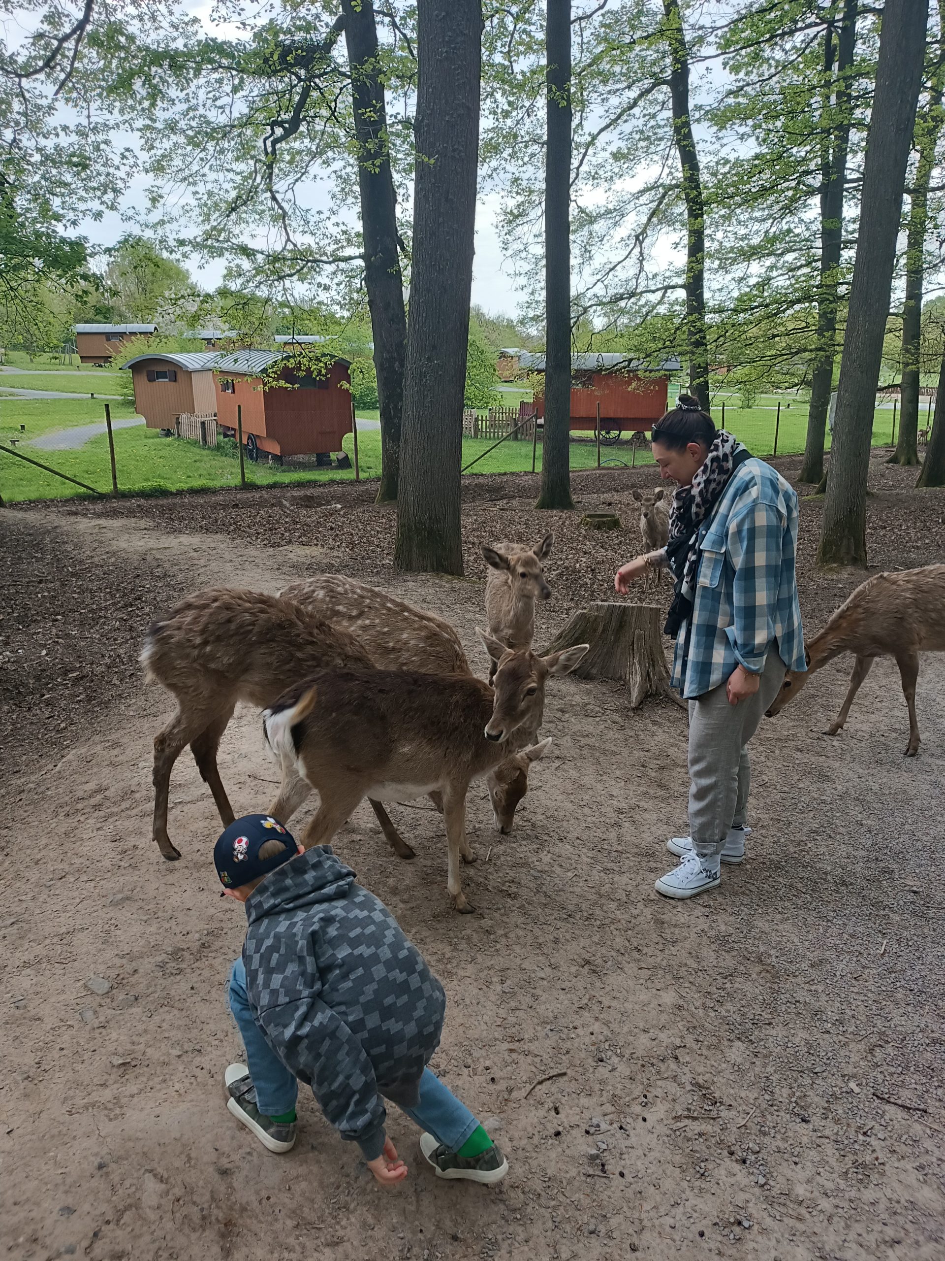 Kaum hatten wir das Areal des Wildparks betreten kamen bereits die ersten Tiere auf uns zu. Meinem Sohn war das Anfangs nicht so ganz geheuer. Wir waren nämlich auch schon in Parks, da wurden die Tiere aggressiv und extrem aufdringlich um an Futter der Gäste heran zu kommen. Ganz anders hier: Die Tiere waren zutraulich und lieb, ruhig und entspannt. Innerhalb weniger Minuten hat mein Sohn seine Skepsis verloren. Nicht aber den Respekt vor den wilden Tieren, denn der gehört definitiv für uns dazu bei solch einer Begegnung.